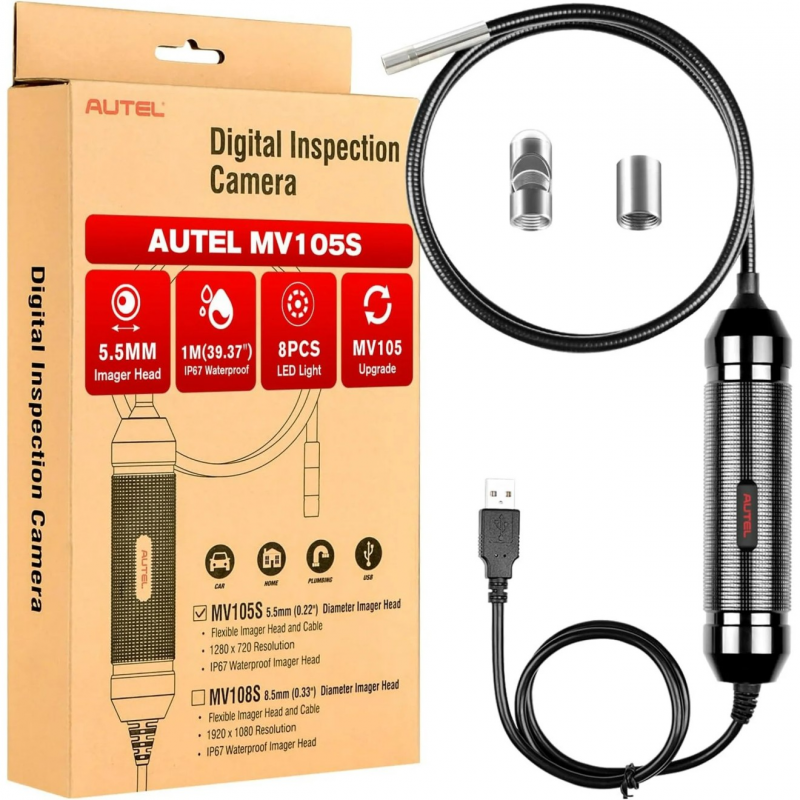 Le MaviVideo MV105S transforme les tablettes de diagnostic AUTEL ainsi que n'importe quel ordinateur portable en vidéo-endoscopes à part entière, permettant ainsi de visualiser des zones inaccessibles à l'œil nu (culasse, cavités, etc.). De plus, il est capable d'enregistrer des vidéos et des photos afin d'inspecter toutes les zones dans des environnements d'évaluation.